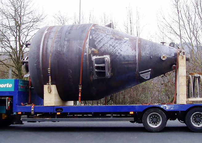 Förderbehälter Ø 2600 x 30 mm, aus Werkstoff P265GH, Stückgewicht ca. 15.000 [kg]