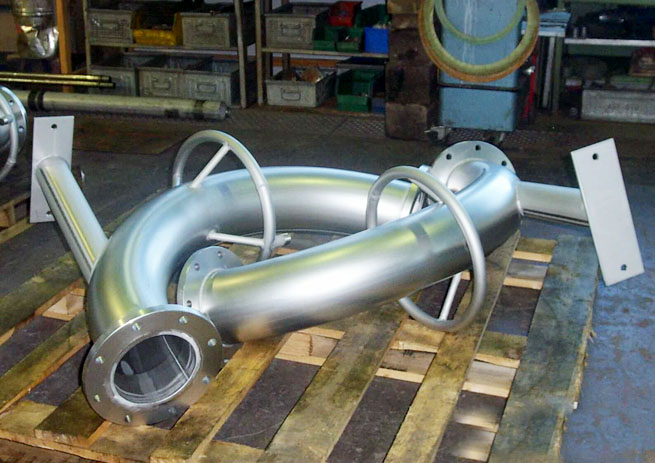 125-ltr. Geber und Rohrbögen zur Förderleitung für Schlachthofabfälle aus W.-Nr. 1.4541,